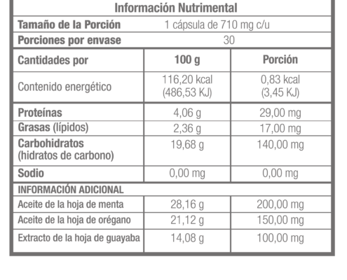 Hoja de guayaba (Psidium guajava L.), Menta (Mentha viridis) y Óregano (Origanum vulgare L.)